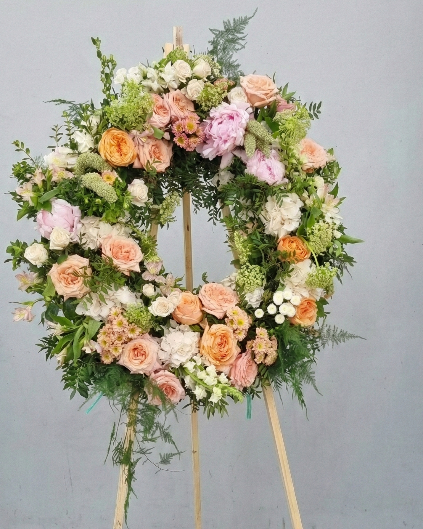 En los momentos en los que las palabras no son suficientes, las flores hablan por nosotros. Esta corona ha sido confeccionada con el máximo respeto y delicadeza, pensada para rendir un homenaje sincero, natural y elegante a esa persona especial.