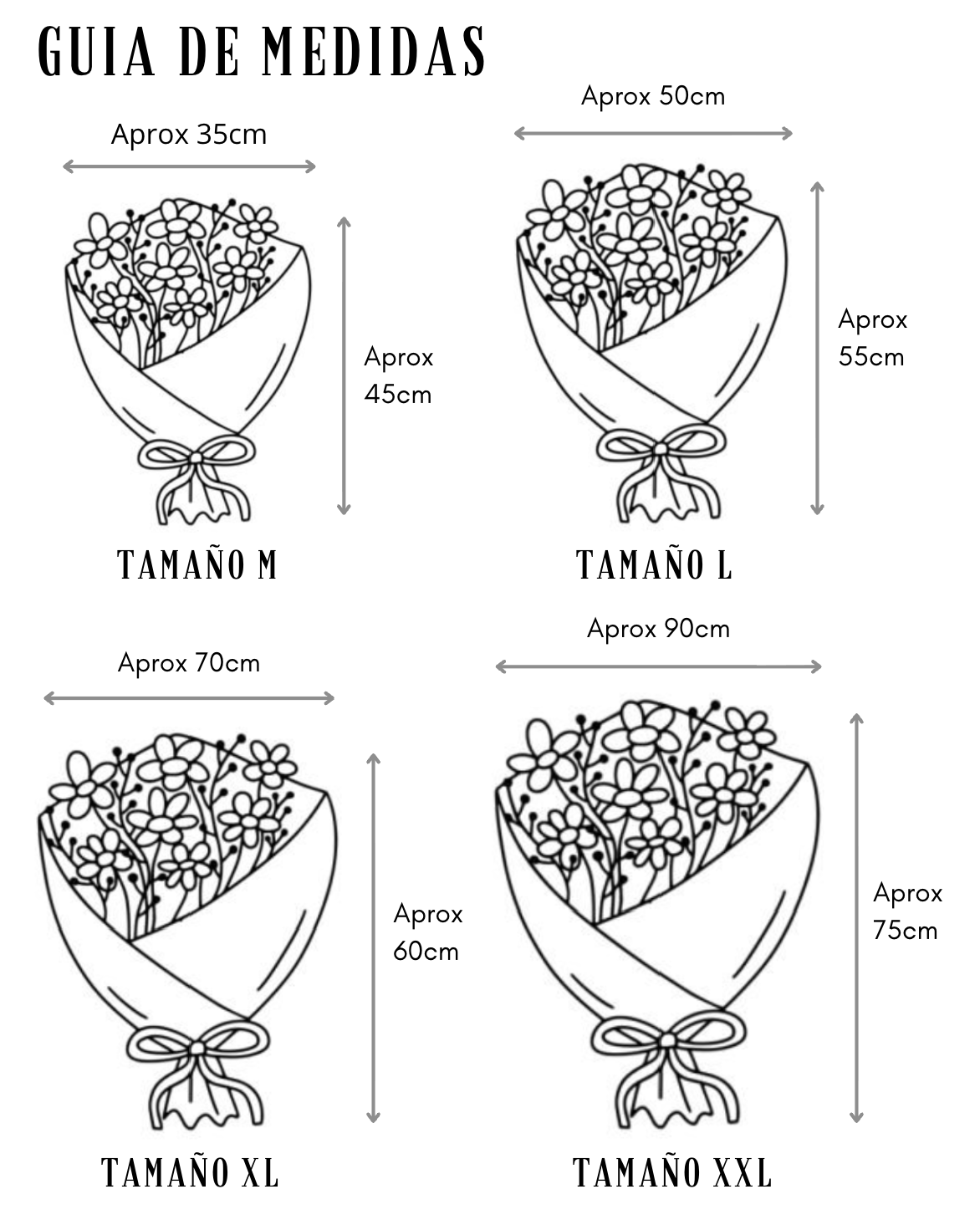 El tamaño y los tonos siempre serán orientativos, pudiendo variar según la selección de flor y verdes de cada temporada.