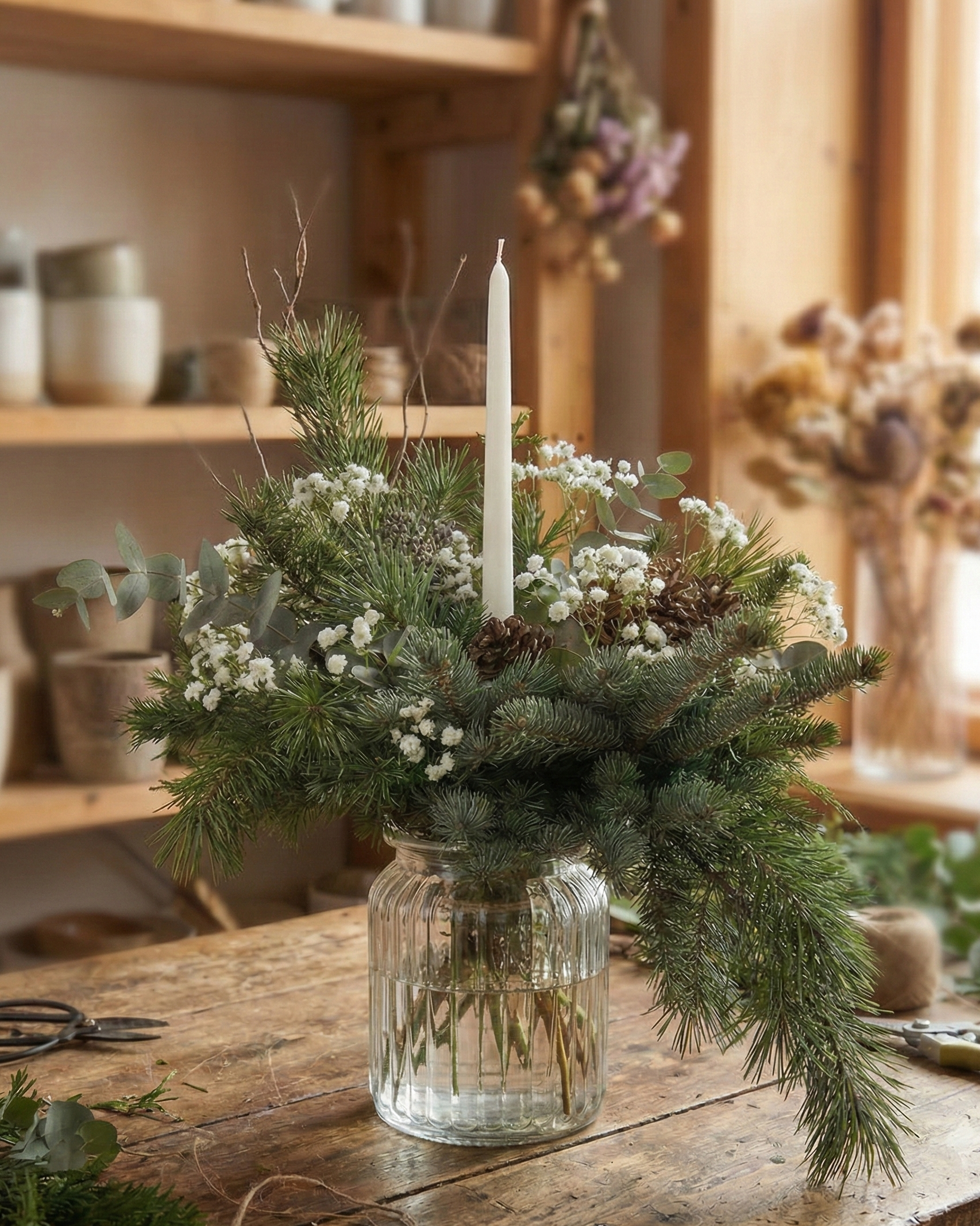 En este taller aprenderás a crear un jarrón floral de inspiración invernal, combinando flores y elementos naturales que aportan calidez al hogar. Una propuesta perfecta para mantener el encanto del invierno sin recurrir a la decoración navideña. No solo te llevarás una decoración de Navidad hecha a mano, sino también una experiencia creativa y relajante.